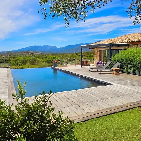Η Villa Samsara, Piscine & Luxe Lecci διαθέτει βεράντα με θέα στο βουνό και απέχει 42 λεπτά οδικώς από το αεροδρόμιο Figari Sud-Corse.